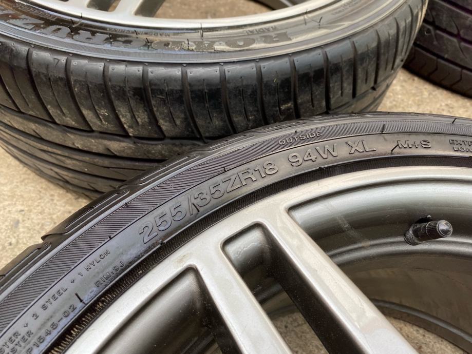 Zadnje 8.5jx18 et49 sa gumama Joyroad 255/35-18 dot 2022, dubina ripne 6mm.