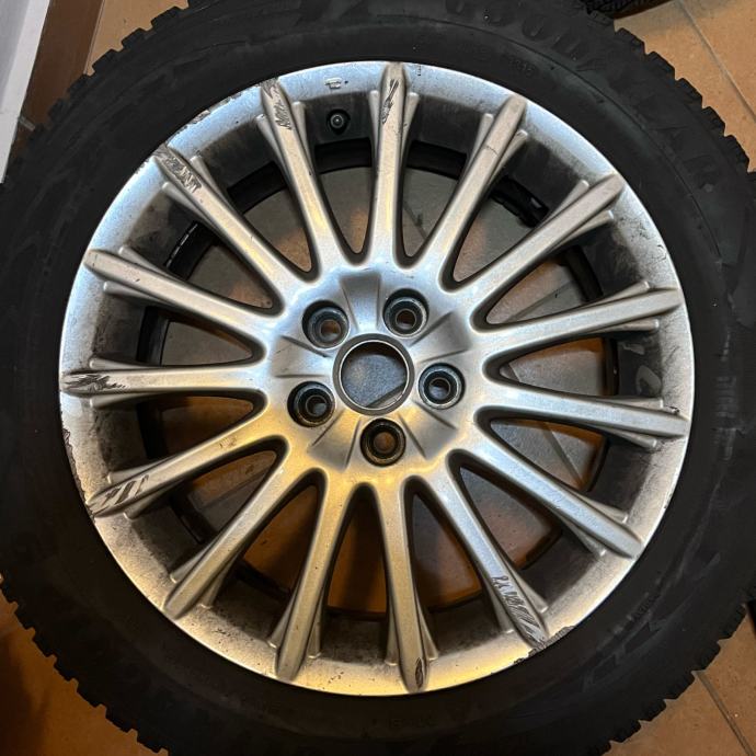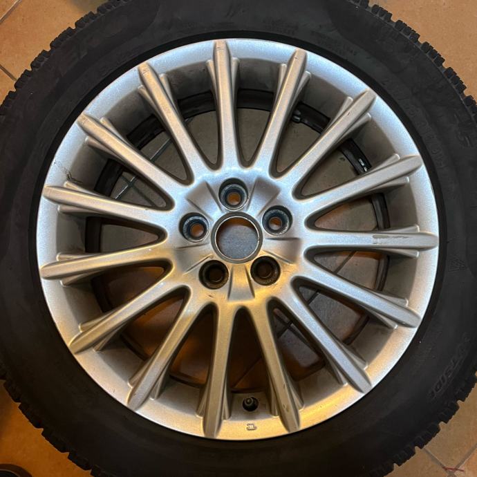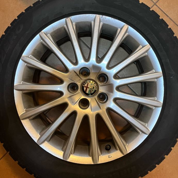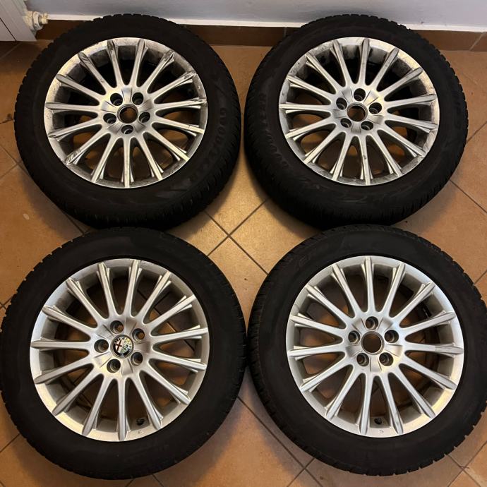 Prodajem 4 original Alfa Romeo srebrne multispoke felge 60695999-AL 16" 5x98, isključivo u kompletu. Montirane stare zimske gume, Goodyear i Semperit, 2011.-2013. Felge su potpuno ispravne, vožene su na autu, skladištene. 3 su sprijeda u poprilično dobrom stanju, jedna nažalost ima ogrebotine - vidljivo na slikama. Felge su izvorno za Alfa Romeo 147, ali pašu i na Alfa Romeo 156, GT, GTV/Spider. Središnja rupa 58,1, ET 41,5. Set je 175 €.