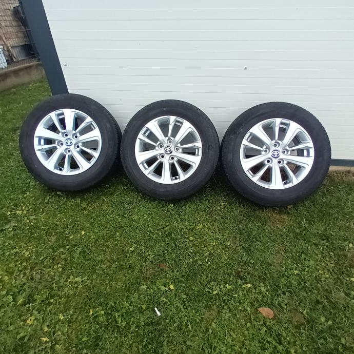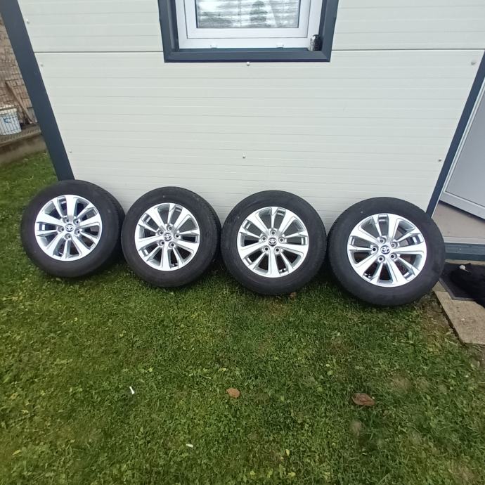 Alu felge original Toyota 16 col,promjer rupa 5x114.3 ET 45, 6.5J saljetnim gumama 205/60 16 Dot 47/24...Felge su 2025 godina sa novog vozila,kratko vožene, bez oštećenja ,kao nove!