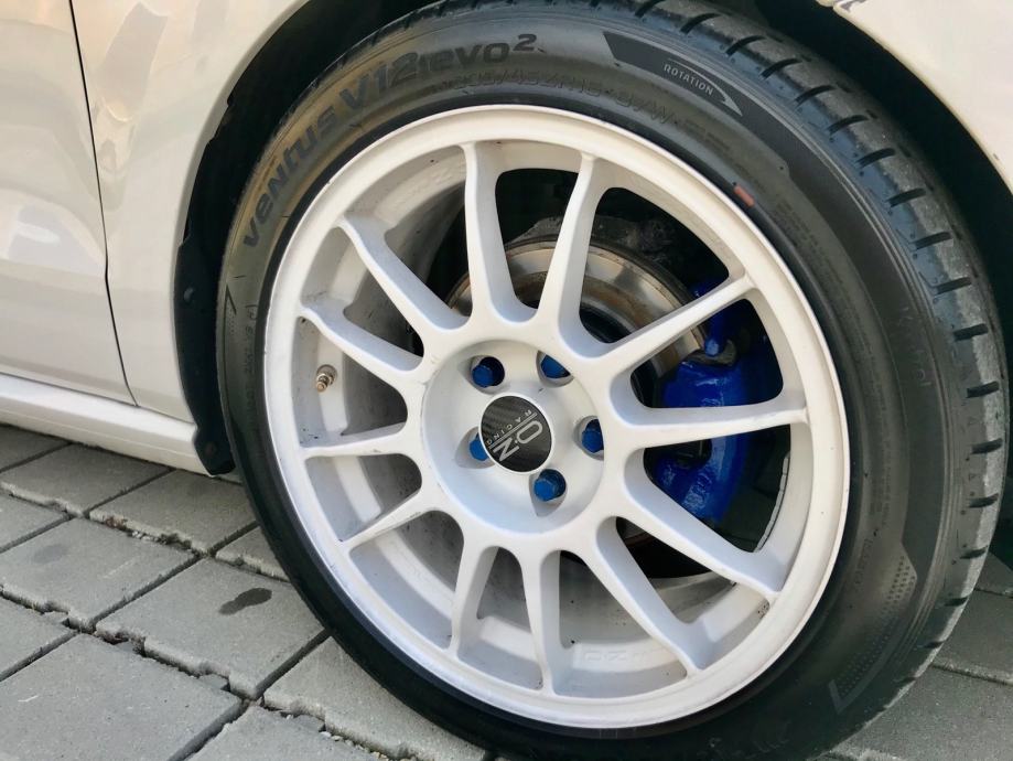 Prodajem felge OZ Superleggera 7x16, 5x100, ET35, sa original carbonskim čepovima, plastificirane u bijelo, gore su skoro nove gume Hankook ventus V12 evo2 205/45R16, imaju cca 5000 km.