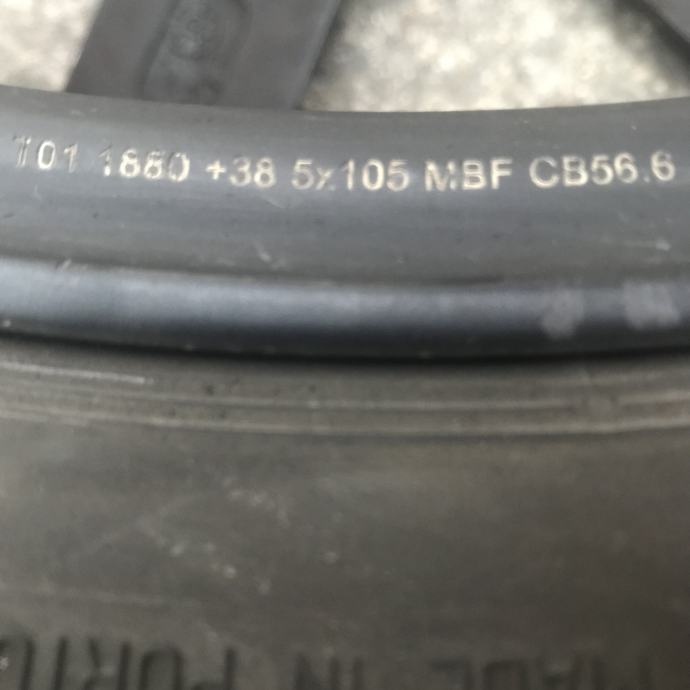 Kao nove alu felge Rondell 01RZ, 8Jx18, 5x105, ET38, centralna rupa 56.6, s ljetnim Continental gumama 215/55/18, DOT0616 i TPMS (Tire-pressure monitoring system) senzorima.