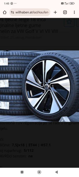 Potpuno nove u kutijama orginalne Volkswagen alu felge 18" cola