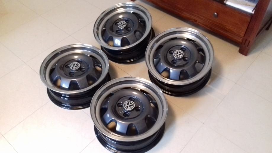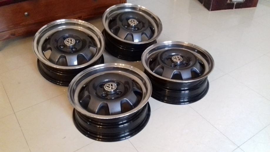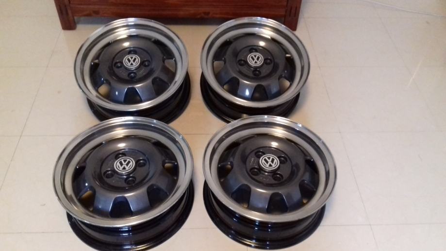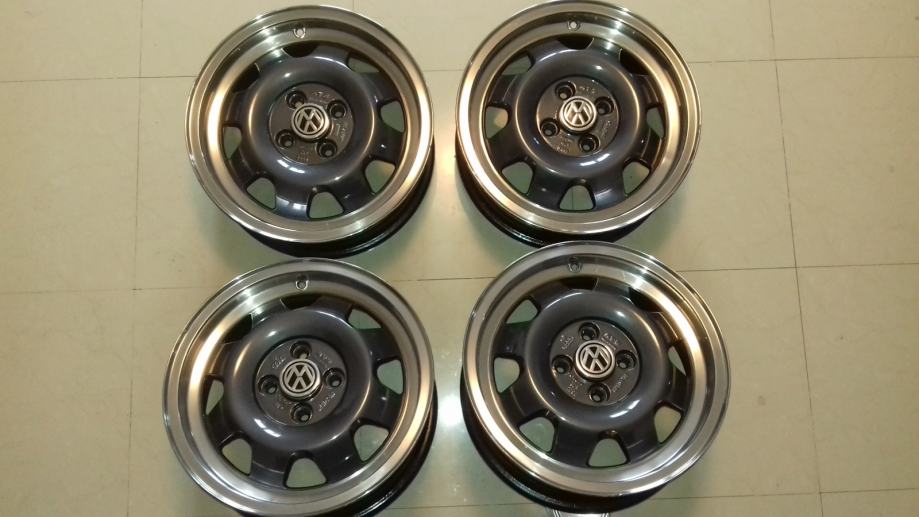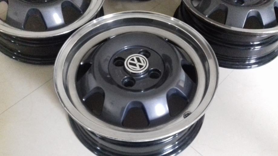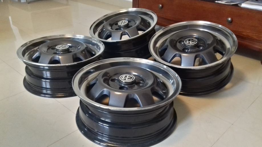 Prodajem alu felge Ats Cup 15 cola, raspon rupa 4x100, 5.5j, et38. Felge su originalne, imaju tvorničke žigove VW i Audi, na novo su restaurirane, rubovi polirani do visokog sjaja, lice lakirano u gun metal te bubnjevi izvana i iznutra u sjajno crno. Felge na sebi imaju minimalne tragove korištenja s obzirom na starost felgi. Felge od kada su bile restaurirane nisu bile na autu niti su gume bile na njima, stoje skladištene u garaži. Potpuno su ravne, nisu udarane, varene, ravnane i slično te je moguća provjera kod vulkanizera po Vašem izboru. S felgama dolaze i potpuno novi VW čepovi.
