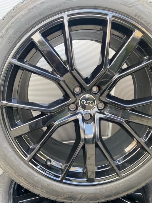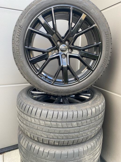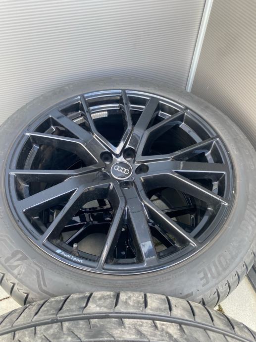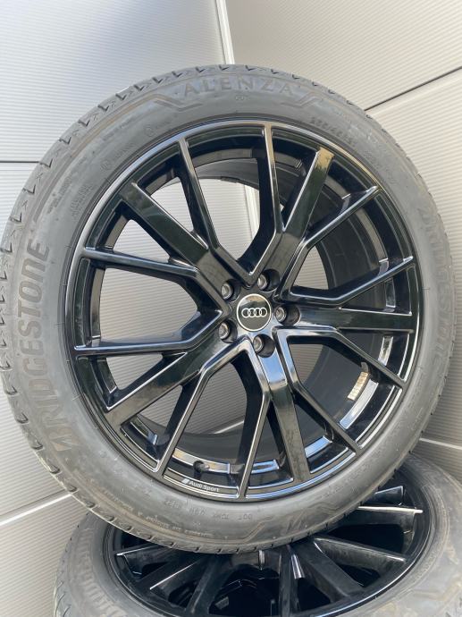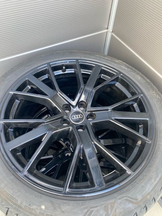 Prodajem 21“ Audi Sport orginal felge za Audi Q8 E Tron ili Q8 Sportback E Tron sa Audi poklopcima.Felge urednom stanju s Bridgestone 265 45 21 5mm gumama.