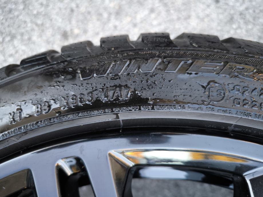 Na njima su zimske gume Pirelli P zero Winter, dimenzija prednje 245/40 , DOT 2022 , profil šara 90% i zadnje 275/35, DOT 2018 s još cca 70 % profila šara.
