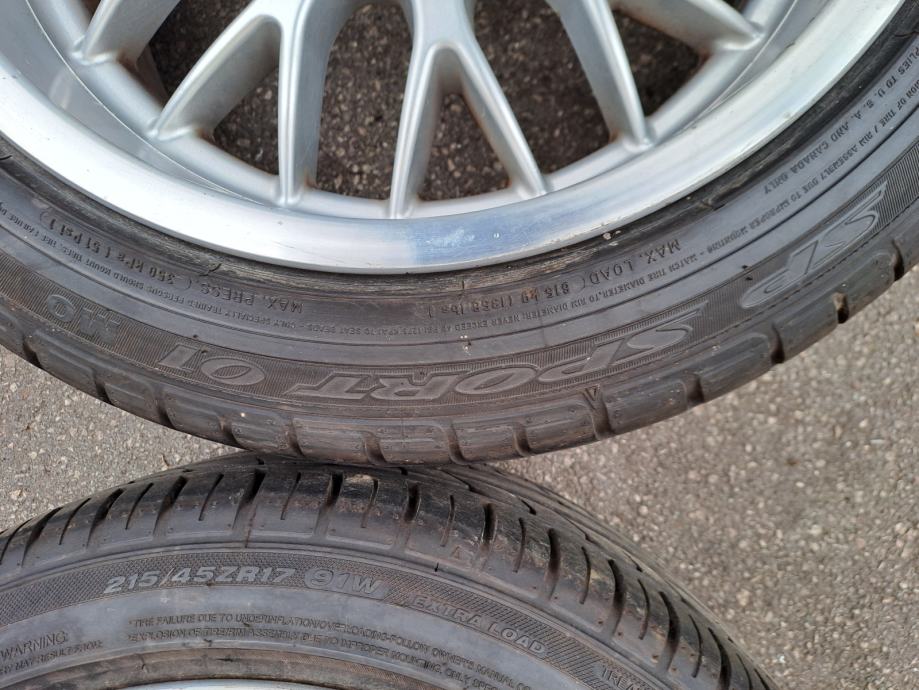 Prodaju se sa dobrim gumama, gume imaju oko 7mm mesa. Prednje gume 215/45, zadnje 225/45.