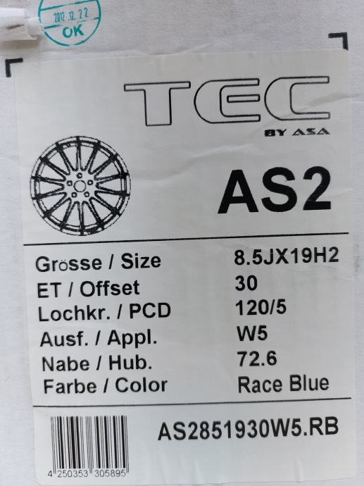 Akcija !! Novo, BMW TEC race blau alu felge 19" rupe 5x120, 4 kom.