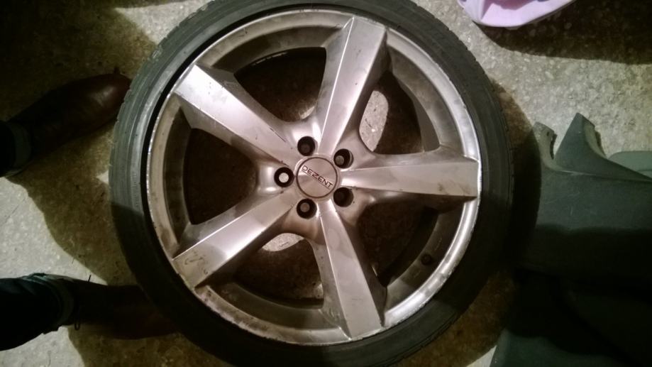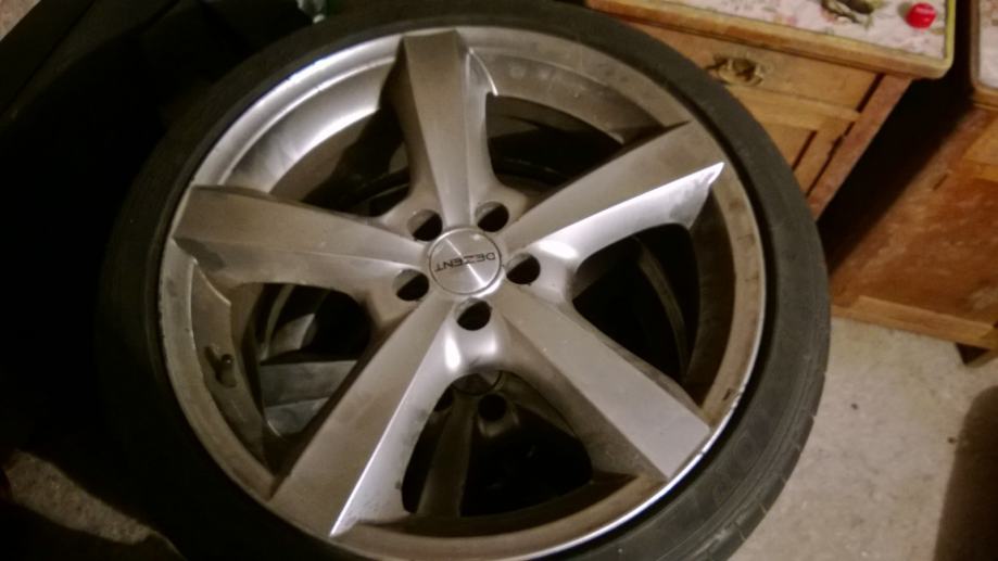 Kao sto naslov kaze prodajem felge sa svoje 156-tice marke Dezent F,18 cola,8 Jota,ET 45,razmak 5 X 100. Felge su na gumama 225/40/18, 2 su dobre a dvije su lose, ali izdrzat ce sezonu uz felge dolaze i sarafi s pomicnim konusom i centralni prsten za 5X98...felge su u ok stanju imaju par ogrebotina po rubu i na 2 se poceo malo gulit lak nije nista strasno ali zato je i cijena takva niska!! slobodno usporedite cijene dezent 18 cola felgi i moja je najniza!! Od kad sam prodao auto stoje mi vec godinu i pol u garazi!