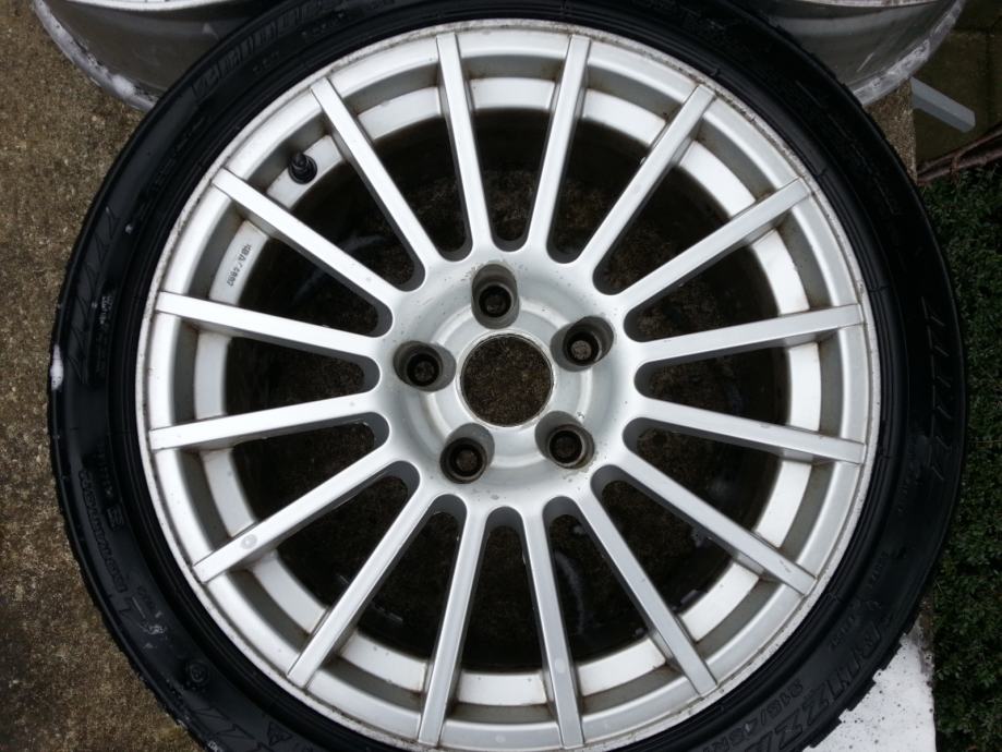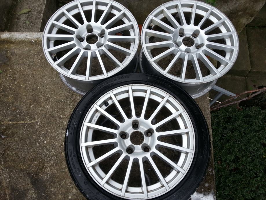 Felge Dotz La Mans 17 cola, 8j et35. Slikane su samo tri jer mi je cetvrta za rezervu u autu pa mi ju se nije dalo vadit da je slikam :) Uz felge poklanjam i 4 zimske gume 235/45 u losem stanju ali za silu mogu posluzit.