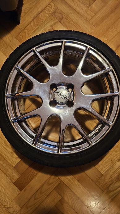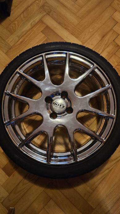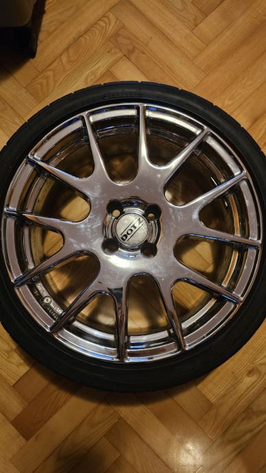 Prodajem felge DOTZ Nardo Chrome 17X7 ET38 4X100 sa gumama. 3 felge su u odličnom stanju, 1 felga je malo ogrebana što se vidi na slikama. Gume su Toyo Proxes 205/40 stare oko 15 godina te su za zamijenu.