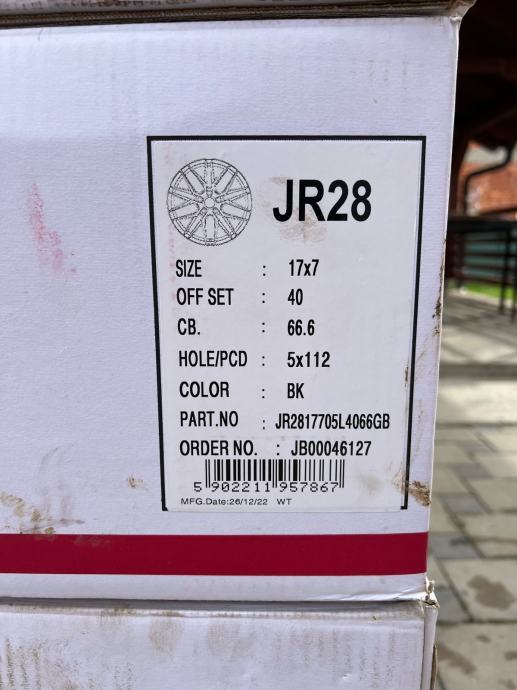 Jr28 17” et40 5x112 glossy black ” kupljene prosle godine u 7 mj, koristene 2 mj, kao nove su, sa njima dodu vijci 14x 1,5 + kljuc JR, felge su kao nove nemaju crtice na sebi.