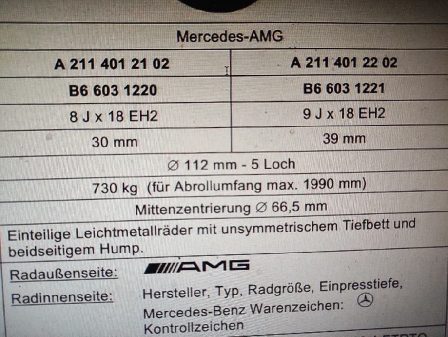 NOVO ( generaluberholt ) AMG alu felge 18 zoll za Mercedes , s novim AMG poklopcima - čepovima . Prednje 8JX18EH2ET30 , zadnje 9JX18EH2ET39 . Orginal za W 211 . ( W 210, W 211,W 212, W 213, W 208, W 209, CLK , SLK ...) NOVO NOVO . Orginalno stanje !!! Set 1600 € . Cijena fixna . Rezervirano . Zagreb .
