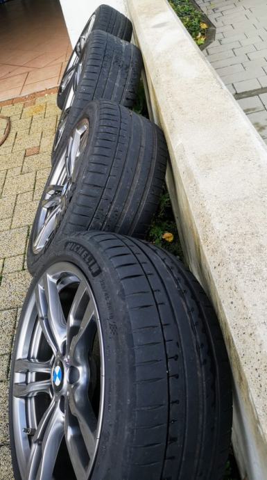 Prodajem original BMW f30 M performance felge stare 2 god, nikad farbane stanje kao novo vidljivo na slikama osim jedne prednje kojoj je vulkanizer napravio malu crticu, s felgama dolaze original TPMS senzori za tlak i temperaturu guma, gume su Micheline pilot sport 4 prednje u solidnom stanju zadnje na indikatorima.