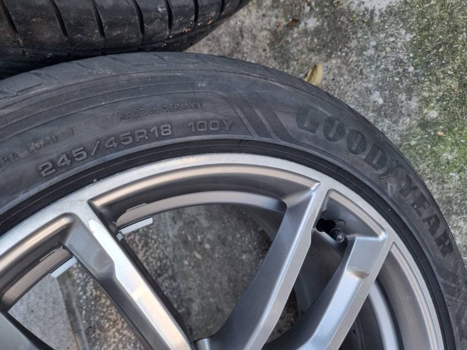 Original BMW Alu felge 18" skinute sa BMW Serija 5 G30 sa odličnim ljetnim Goodyear RunFlat gumama. Felge su u odličnom stanju, doslovno nove, bez ikakvih oštečenja..