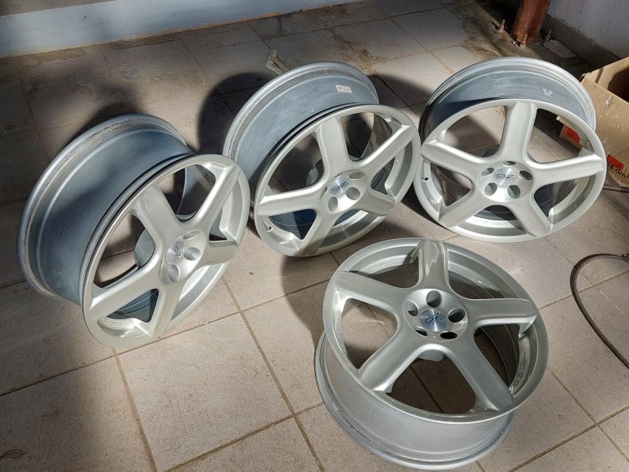Felge su u izvrsnom stanju, nisu krive, ravnane, varene i sl. Zbog sitnih ostecenja od kamencica su pofarbane nanovo i od tada nisu koristene, dakle bez crtice.