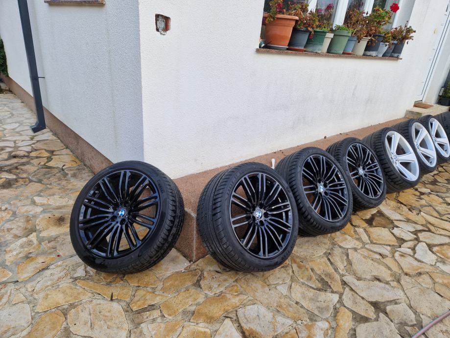 Felge su kao nove,bez ostecenja,original crne od bmwa g30 m paket,sa original senzorima,prednje gume nove pirelli,zadnje goodyear vozene jednu sezonu.