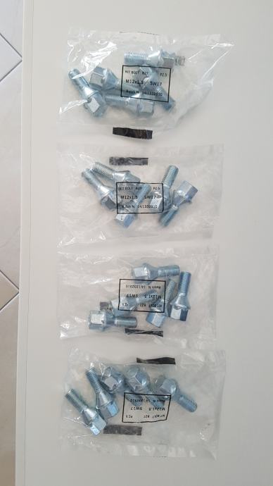 Novi vijci za aluminijske felge, 20 kom. = 20 eura, M12 ili M14