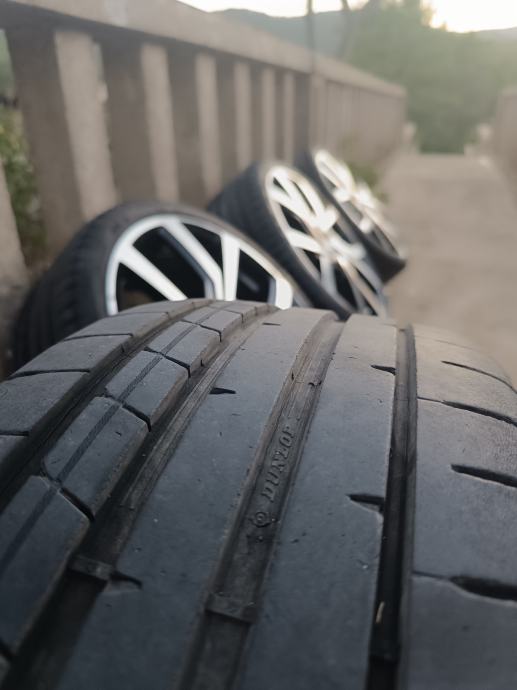 Gume su nisko profilne, ljetne u solidnom stanju marke Dunlop sport maxx 225/35 19R. Gume i felge jako lijepo liježu na auto i taman su do ruba blatobrana tako da im daju vizualni i sportki štih.