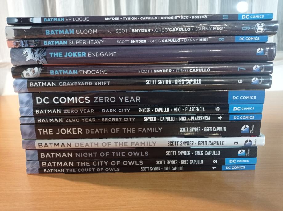 u 10 knjiga + 4 tie-in masivne knjige (2011-2016), full glanceri, novi nečitani, a hardcoveri zapakirani u originalnim plastikama. Ovo je najkompletniji set New52 Batmana kojeg možete naći.