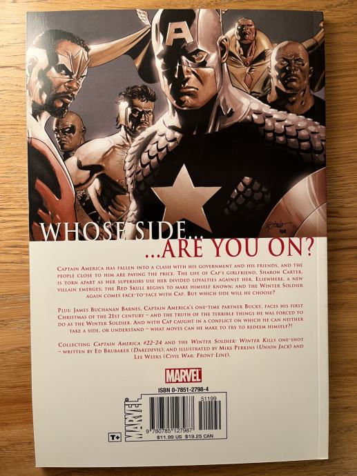 Prodajem TPB u mint stanju MARVEL CIVIL WAR: CAPTAIN AMERICA (Captain America #22 - 24 + Winter Soldier: Winter Kills) scenarista Eda Brubakera i ilustratora Mikę Perkinsa.