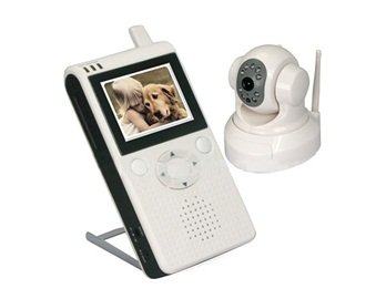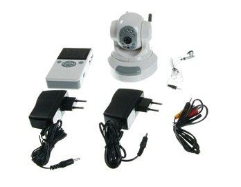 Bežična kamera sa PAN/TILT funkcijom na 2.4 GHz.Prijemnik sa LCD displayom 2.4 ", mogućnost rotacije kamere 360 st.lijevo-desno i 180 st. gore-dolje.U kompletu sav potreban pribor , ispravljači za kameru i LCD prijemnik , mogućnost priključka TV kako bi se vidjela veća slika koju emitira kamera.Najčešća upotreba za nadzor djece.Domet 10-15 m , jedan do 2 zida klasična gradnja-cigla.