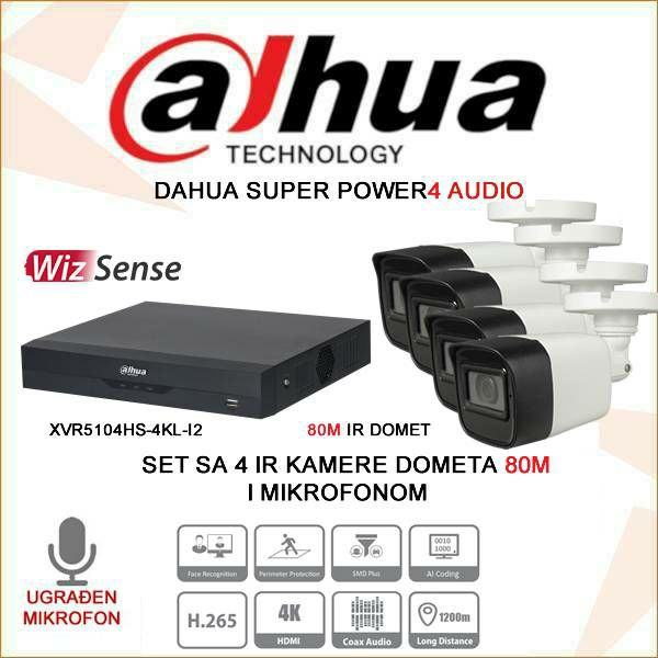DAHUA SUPER POWER4 AUDIO DAHUA SET 4 KAMERE SA ZVUKOM IR80M
