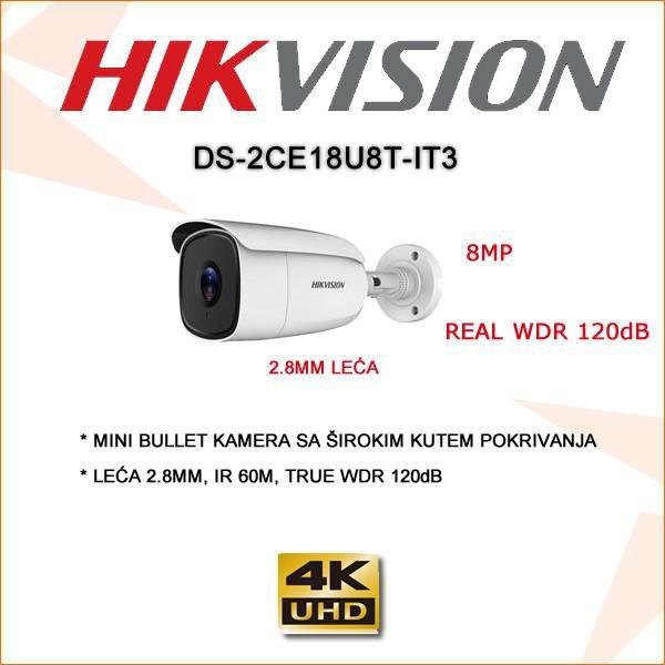 HIKVISION KAMERA ZA VIDEO NADZOR DS-2CE18U8T-IT3 8MP 2.8MM