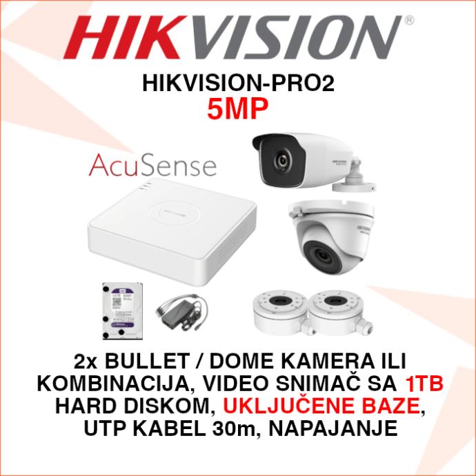 HIKVISION SET ZA VIDEO NADZOR SA 2 KAMERE 5MP I BAZAMA HIKVISION-PRO2