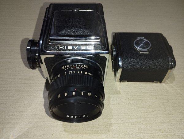 Велики, али глатки фокус Вега 12Б 90 мм Ф 2.8 – Ф 22 објектив је стандардни примарни објектив за Киев 80. Има минимално растојање фокуса од 0,6 метара, што је врло уобичајено за ове типове сочива. Успут, фокусирање се врши помоћу тражила у струку који искаче на врху тела и има микро призму за прецизно фокусирање. Иако је прилично тамна, окренута наопако пресликана слика, фокусирање се прилично добро слаже са сочивом. Отпуштање и мењање сочива се врши левим гвозденим дугметом на предњој страни, поред дугмета за отпуштање затварача. Окидач можете да отпустите само тако што ћете померити `тамни слајд` са задње стране филма, слично старим плочастим фотоапаратима и на пример заменљивим полеђинама Зеис Икон фотоапарата.
