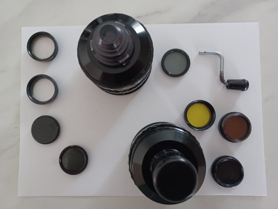 U kompletu pripadajući pribor - 2 objektiva, 7 filtera...