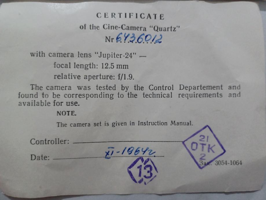 Objektiv: Jupiter 24 (F1.9 / 12,5mm).