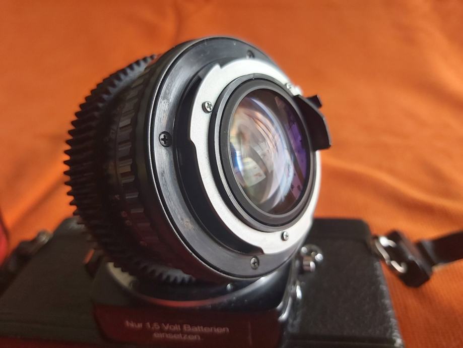 Objektiv 50 mm je u odličnom stanju, blenda (8 listića blende) otvara i zatvara kako treba, stakla su čista bez mrlja gljivica i ogrebotina, fokusiranje je glatko bez zapinjanja na svim otvorima blende, multi coating MC premaz bez oštećenja.