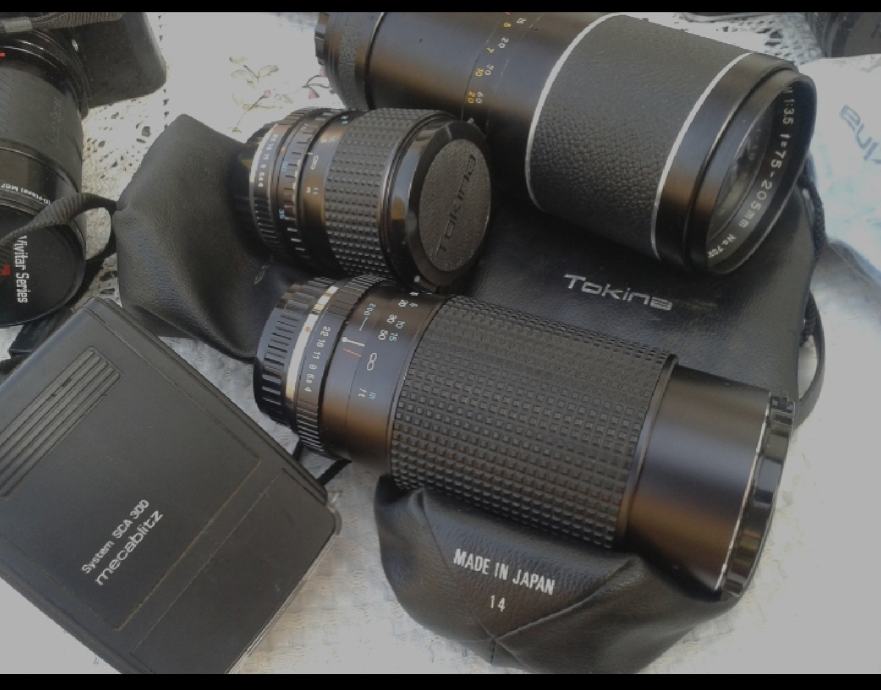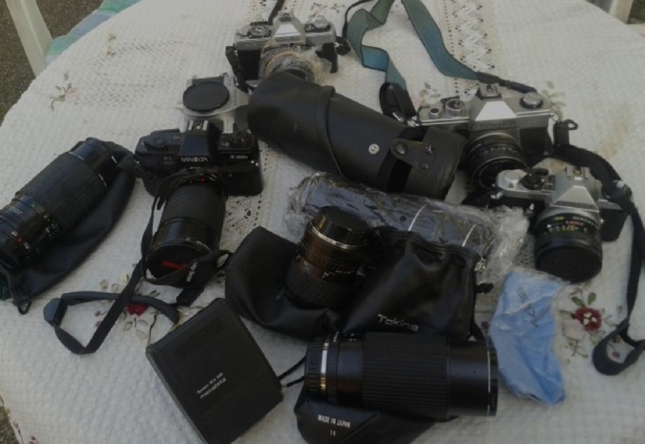 Cijena je navedena za komplet 1practica,2pentaxa,1minolta ,4 objektiva (ne računamo namještene na fotoaparatima)..Revue TTL i konica FS1..modeli 70-tih godina. Bez oštećenja u ispravnom stanju cijena važi za konvolut...pojedinačne vrijednosti su na slikama usporedbe.