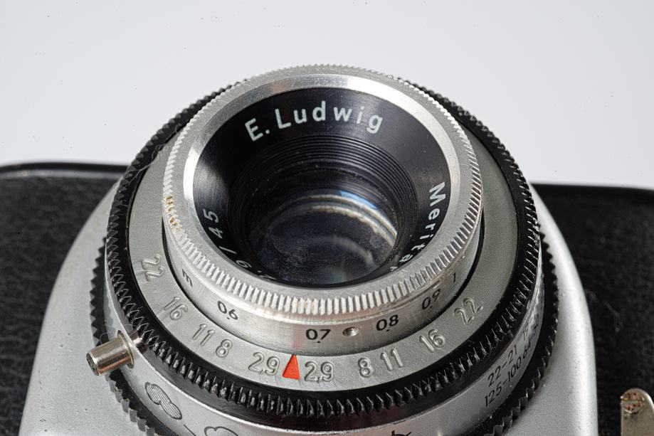 Objektiv E. Ludwig Meritar f2,9 45 mm