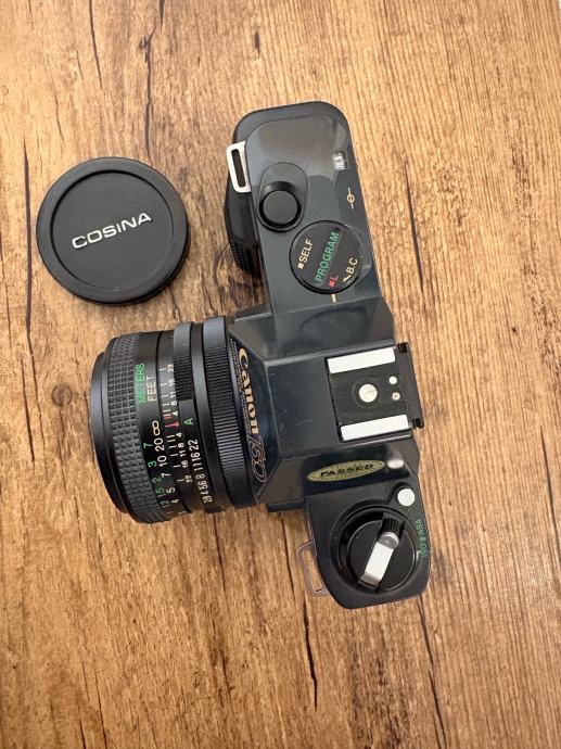 Analogni fotoaparat Canon T50 sa Cosina 35mm objektivom.