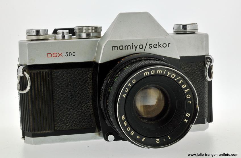 Analogni 35 mm SLR fotoaparat MAMIYA SEKOR DSX 500, japanske proizvodnje , tvtka Mamiya, 1974. god. Aparat koristi TTL svjetlomjer, sa sinhronizacijom bljeskalice 1 / 60 sek, te brzinama zatvarača : B, 1 sek - 1 / 1000 sek. Koristi objektive navoja 42 mm.