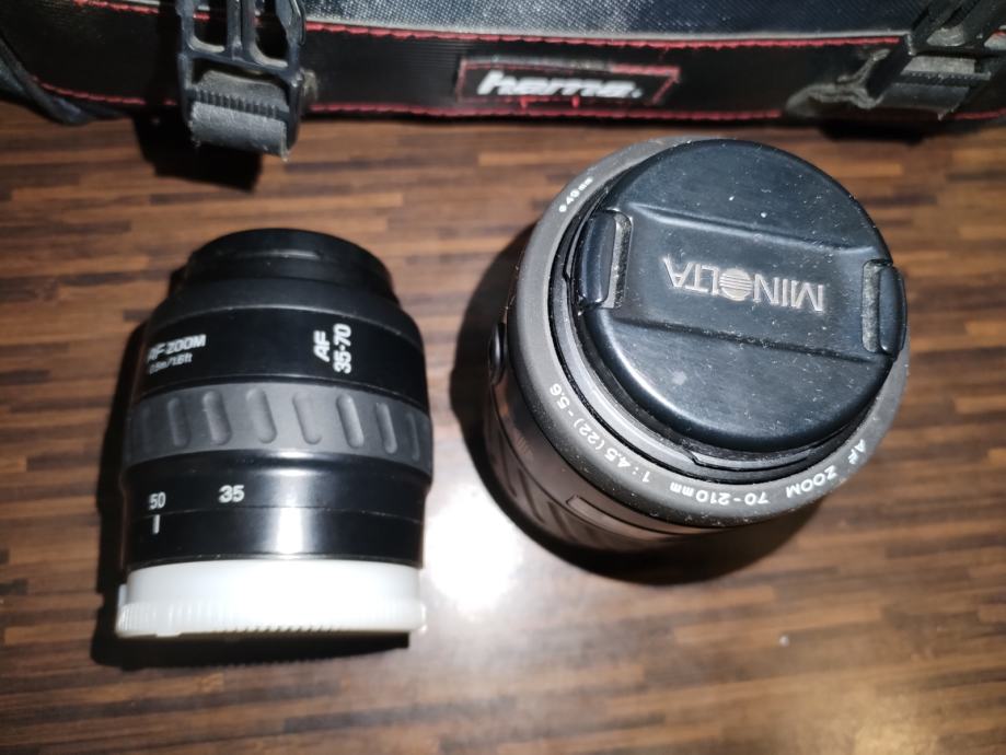 Anologni fotoaparat u odličnom stanju. Zadnjih petnaest godina "leži" u ormaru a prije toga malo korišten odnosno nekorišten. Profesionalna torba, upute za uporabu, objektiv AF 70-210 i AF 35-70.
