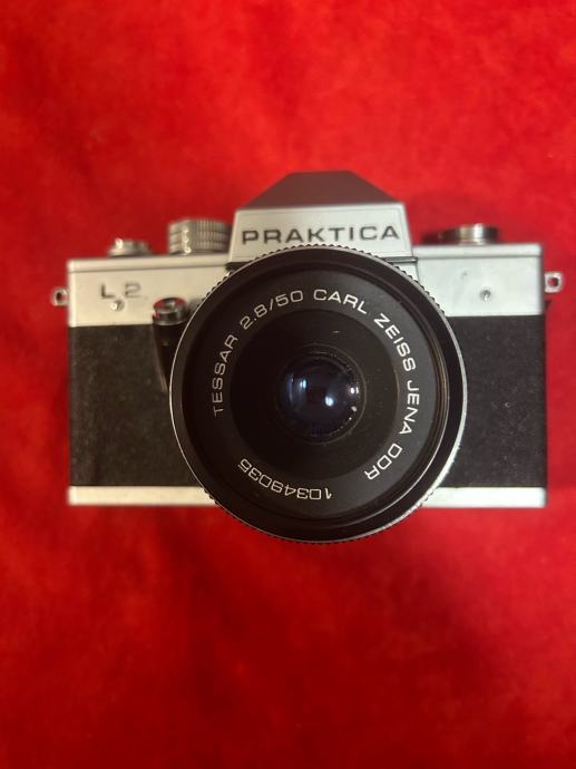 Istocno njemacki analogni fotoaparat Praktica L2 iz sedamdesetih godina. Objektiv TESSAR CARL ZEISS JENA 2.8:50, navoj M42.
