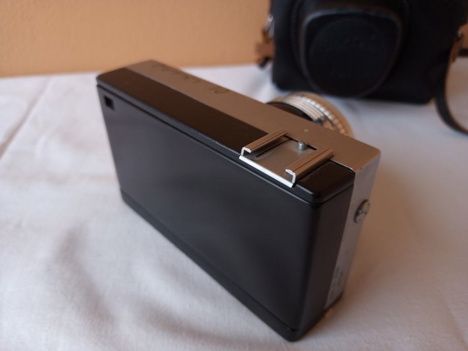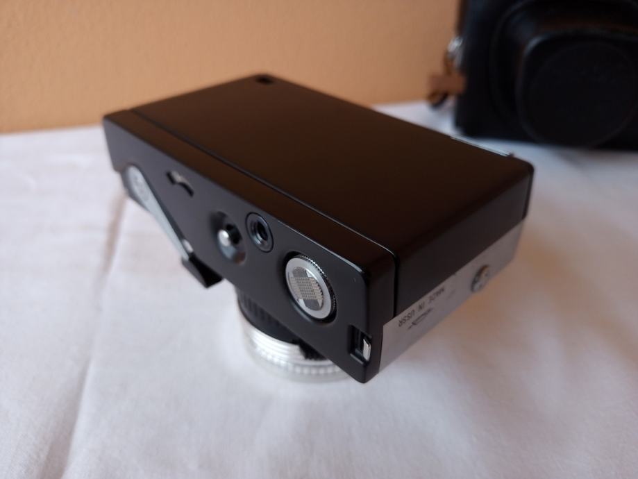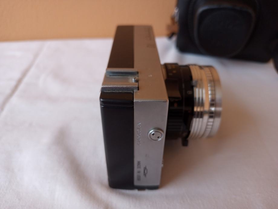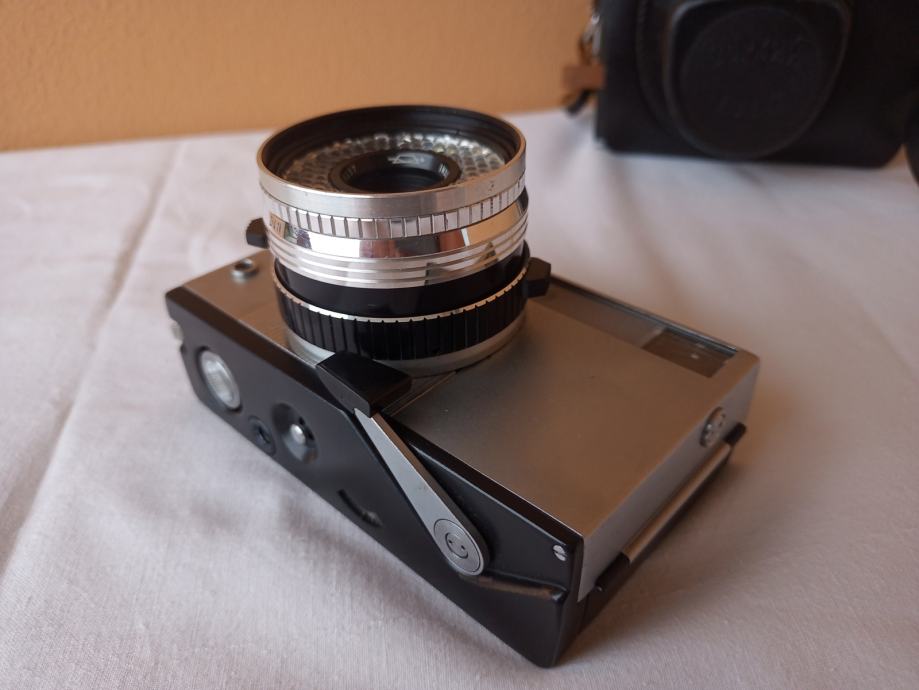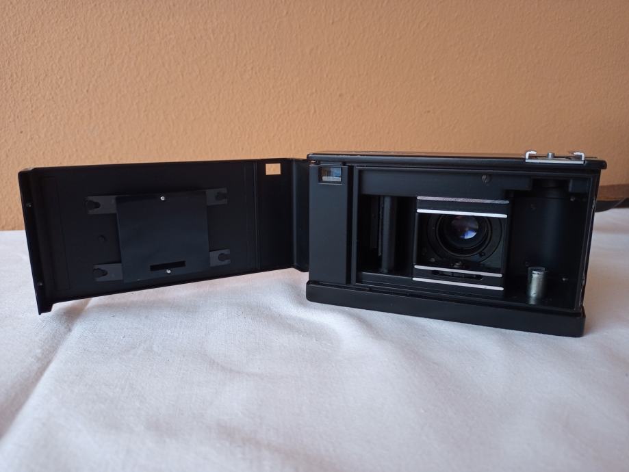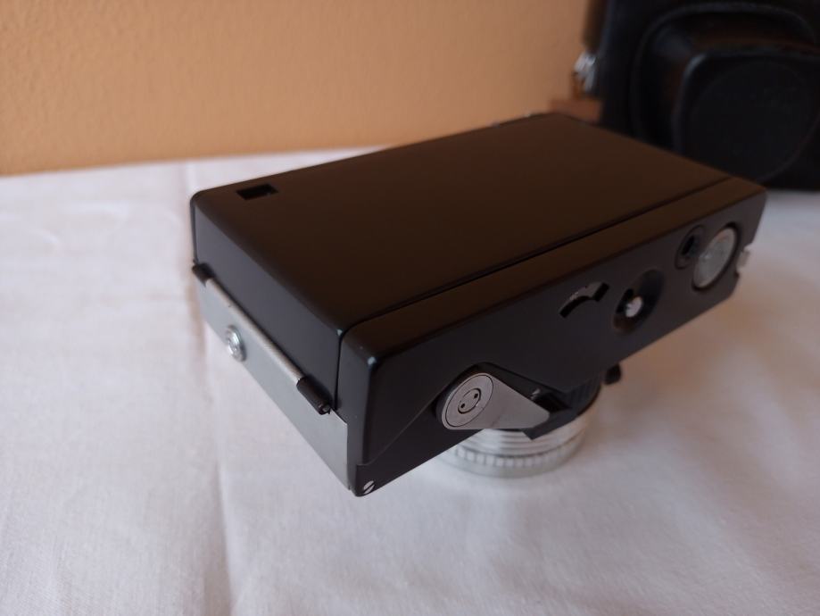 ... i djelomično neprovjeren jer općenito ne znam kako u potpunosti provjeriti objektive. Glede onoga što znam provjeriti, mogu reći slijedeće: Objektiv se uredno izvlači i uvlači, blenda se ne otvara, poluga mehanizma za navijanje je zablokirana, zupčanik za navijanje u spremniku za film se ne okreće, posljedično nisam mogao provjeriti ispravnost okidača, ne vidim nikakav zatvarač i ne znam dali on nedostaje, ručica tajmera zapinje i nastavlja se kretati tek uz pomoć ruke.