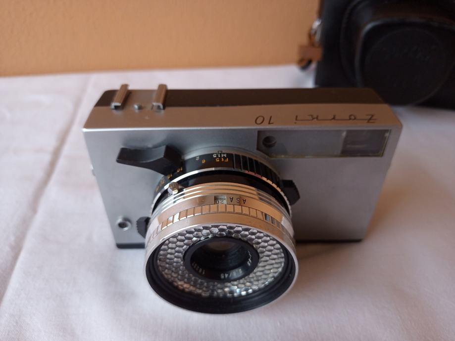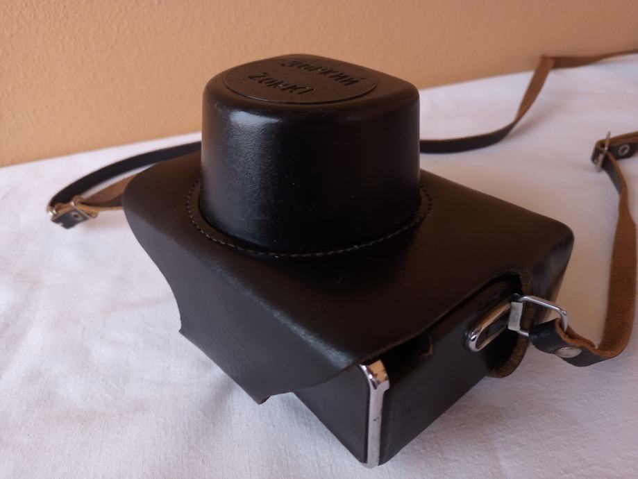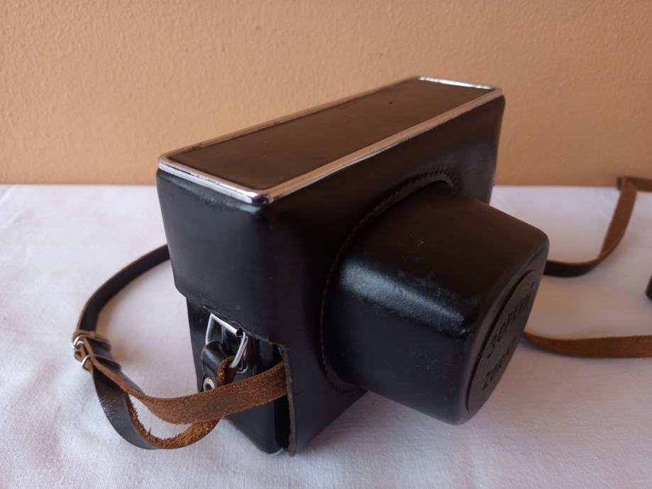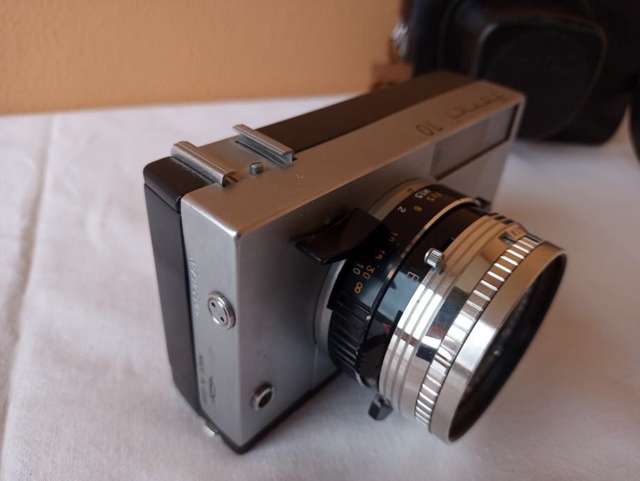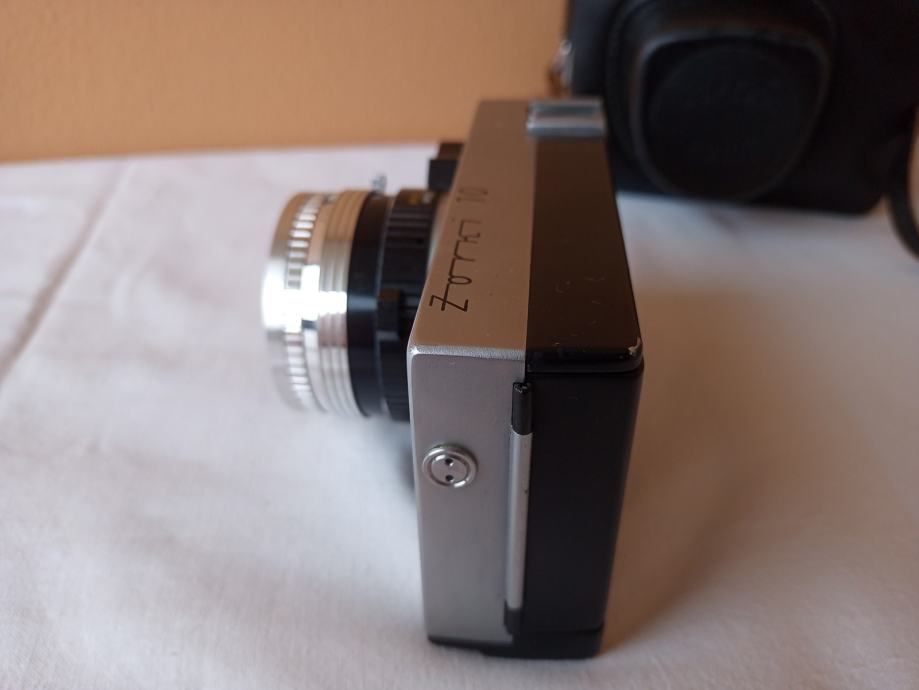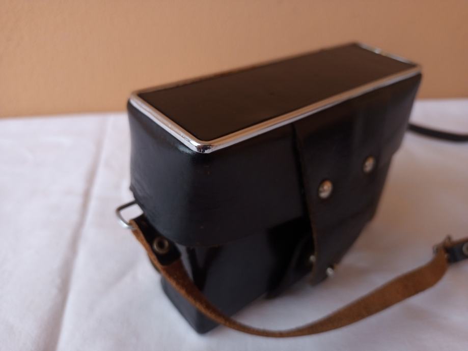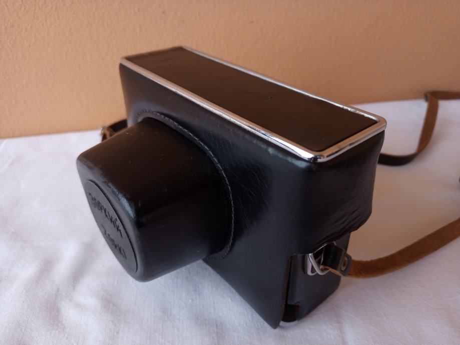 ... i djelomično neprovjeren jer općenito ne znam kako u potpunosti provjeriti objektive. Glede onoga što znam provjeriti, mogu reći slijedeće: Objektiv se uredno izvlači i uvlači, blenda se ne otvara, poluga mehanizma za navijanje je zablokirana, zupčanik za navijanje u spremniku za film se ne okreće, posljedično nisam mogao provjeriti ispravnost okidača, ne vidim nikakav zatvarač i ne znam dali on nedostaje, ručica tajmera zapinje i nastavlja se kretati tek uz pomoć ruke.