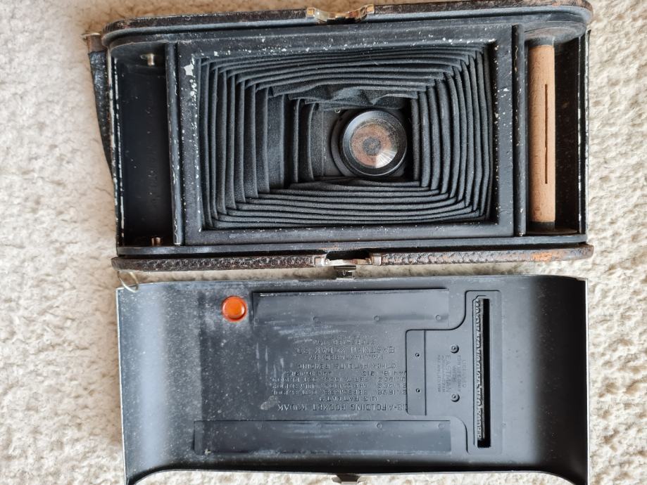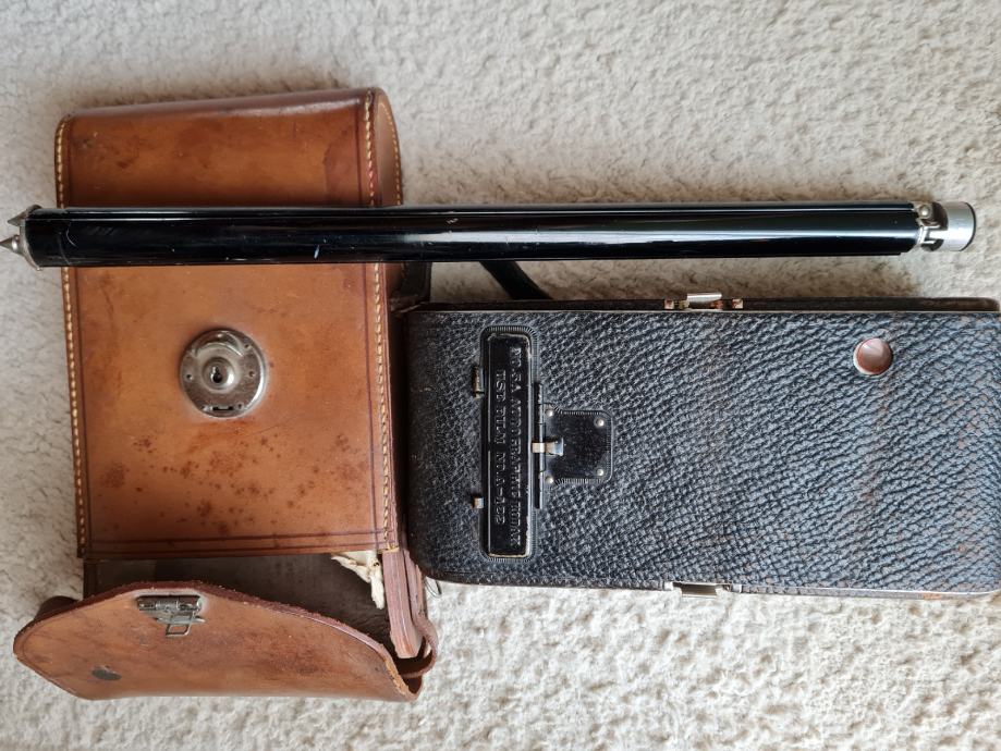 KODAK No.3A folding pocket autographic kamera sa original kožnim torbicom + tronožac, u stanju kao na fotografijama, proizvedena 1910.g.