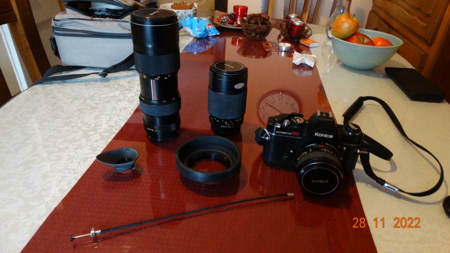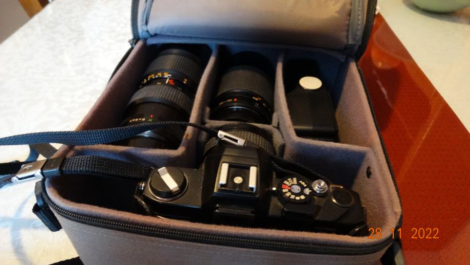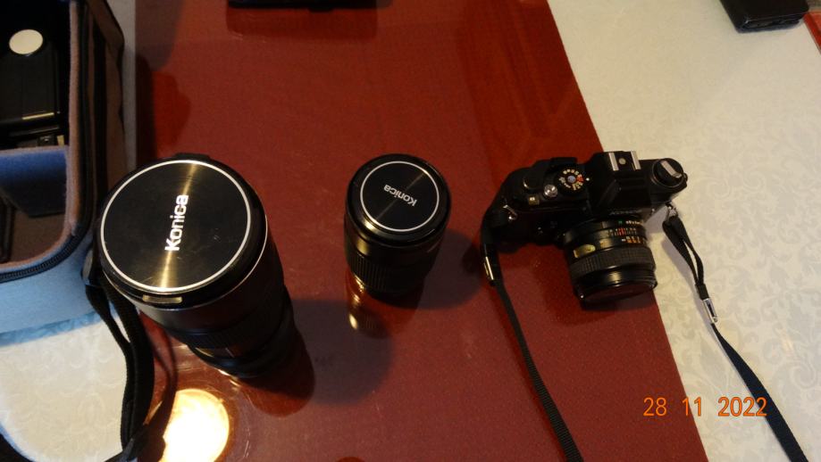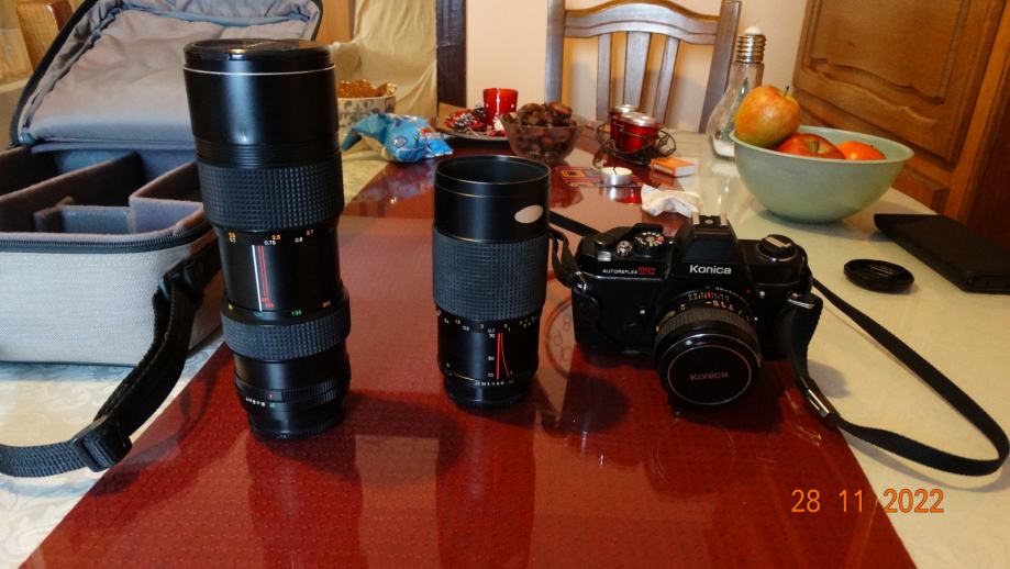 KONICA AUTOREFLEX TC,OBJEKTIV HEXANON AR 50mm F1,4,ZOOM HEXANON AR 35-70 mm F3,5 I ZOOM UC HEXANON AR 80-200 mm F4 55 fi.SJENILA ZA OBJEKTIVE I ZA TRAŽILO.POTPUNO ISPRAVNO,NEOŠTEĆENO I PRIPADAJUĆA TORBICA ZA NOŠENJE.