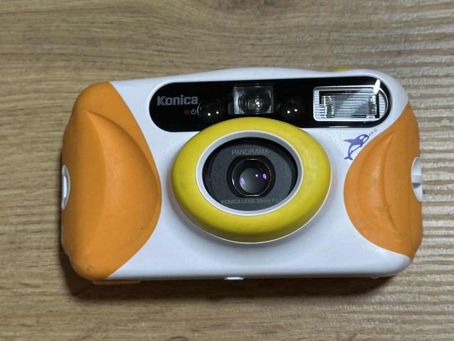 Na prodaju Konica Big Mini Mermaid (podvodna verzija Big Mini BM-201), u dobrom stanju, transport filma radi, okida bez problema, blic radi kao i sve ostale funkcije.