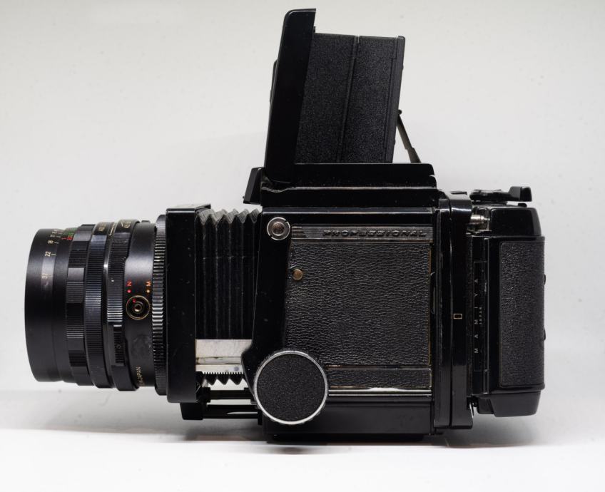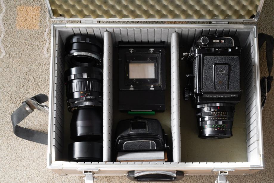 Mamya RB 67 PRO SD BODY sa i tražilom + 6/7 leđa 120, Mamya sekor C 50/ 3,8, Mamya sekor C 250/4,5;, Sjenilo 2 kom (za 50 mm-objektiv), Mamya 6 x 7 120 roll film back pro S,Mamya for plan film 6 X 9, type J (2 side 6/7 ), Mamya Polaroid back model 3, Mamya Extension ring no 1 (45 mm), objektive između 90 i 250 mm,aluminijski kovčeg. Kamera i objektifi su izvrsnom stanju.