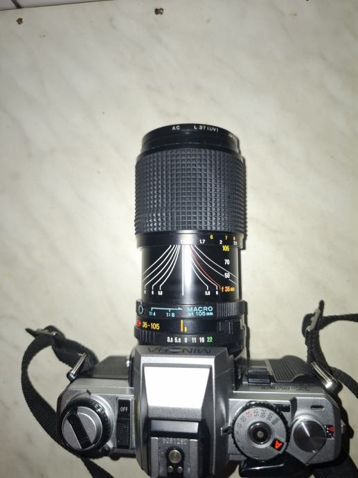 Objektiv: Originalni Minolta MD Zoom 35-105mm 1:3.5-4.5 (Japan) s Macro funkcijom.