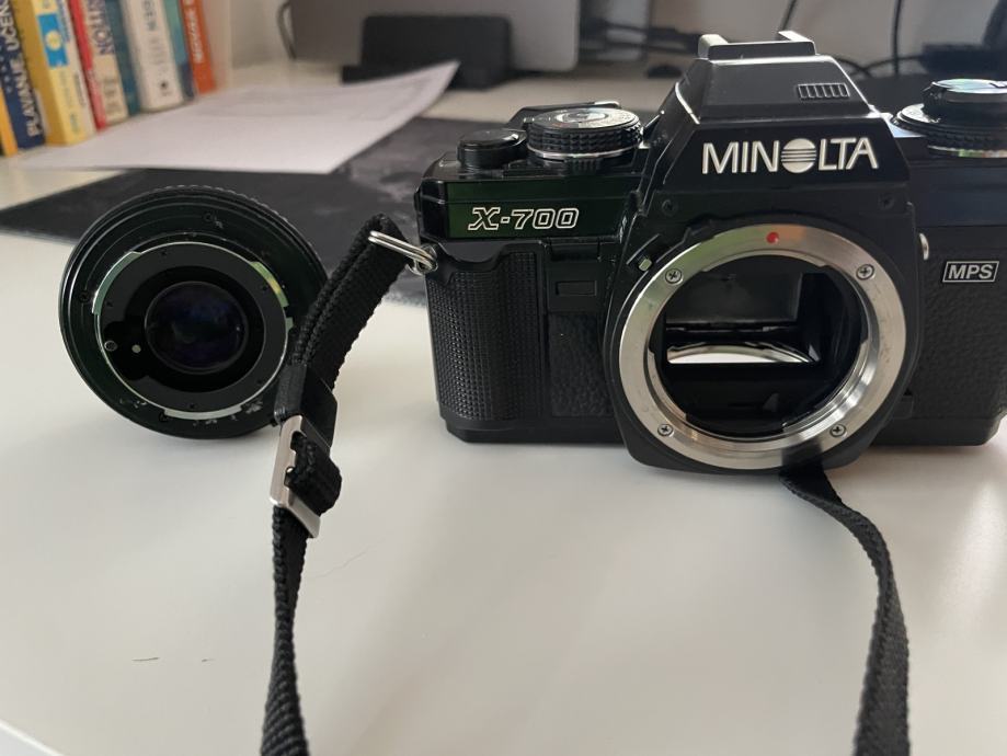Prodajem fotoaparat Minolta X-700 i objektiv Rokkor F2 45mm. Fotoaparat i objektiv su u dobrom stanju s obzirom na godinu proizvodnje. Svjetlomjer radi normalno, baterija je uključena, ali će uskoro trebati zamjenu. Model baterije dostupan je u svakoj trgovini i košta 2–3 €.