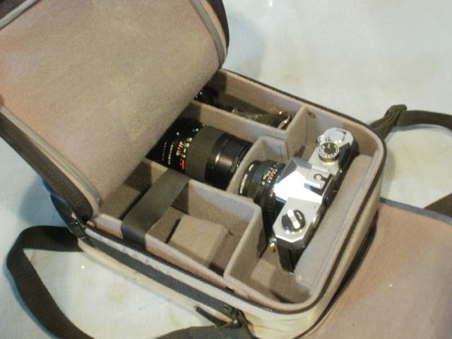 NAŽALOST SAMI FOTOAPARAT JE NEISPRAVAN. NEĆE NI DA NATEGNE FILM NITI DA OKINE ALI SU OBJEKTIVI U VRLO DOBROM STANJU. NA OBJEKTIVIMA JE BAJONET PRIKLJUČAK. UZ NJEGA IDE I CULLMANN TORBA I NEŠTO PRIBORA ZA FOTOAPARAT. 098/169.9995.