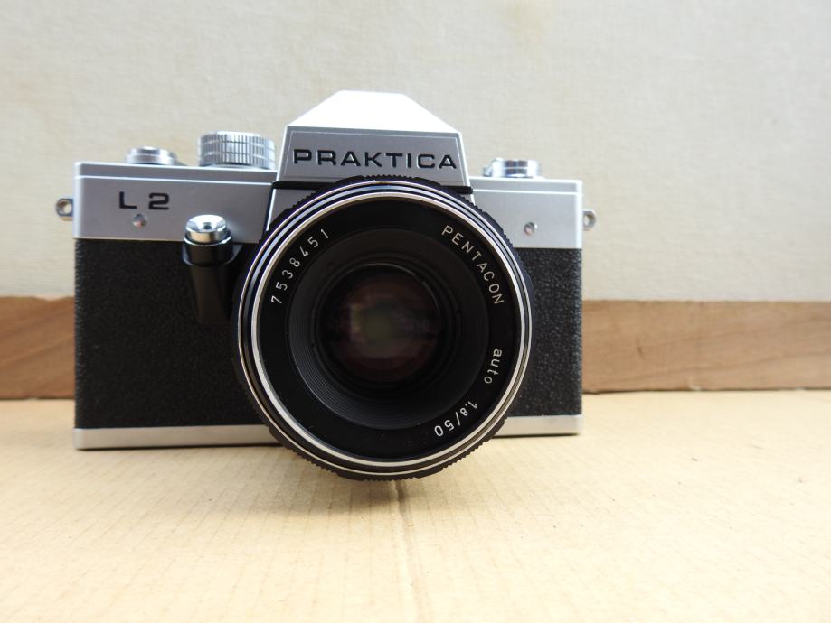 Na prodaju je PRAKTICA L2 analogni fotoaparat s objektivom Pentacon auto 1.8/50, u kompletu s originalnom kožnom torbicom Pentacon i računom.
