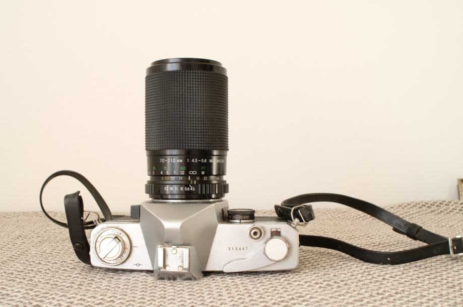 Prodajem sačuvan i ispravan analogni fotoaparat Ricoh Singlex TLS sa zoom objektivom Exakta 70-210 mm f 4.5-5.6 Macro