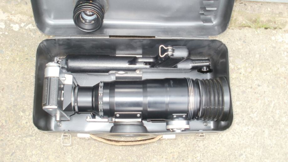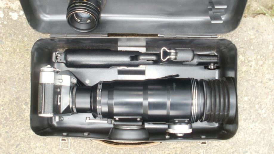 STARI RUSKI FOTOAPARAT ZENIT ES SA TELE OBJEKTIVOM I NOSAČEM KOJI IZGLEDA KAO PUŠKA. OBJEKTIV JE ČIST I APARAT RADI TO JEST ŠKLJOCA NA SUVO BEZ FILMA. SA DODATNIM OBJEKTIVOM I FILTERIMA. U VRLO DOBROM STANJU. 098/169-9995.